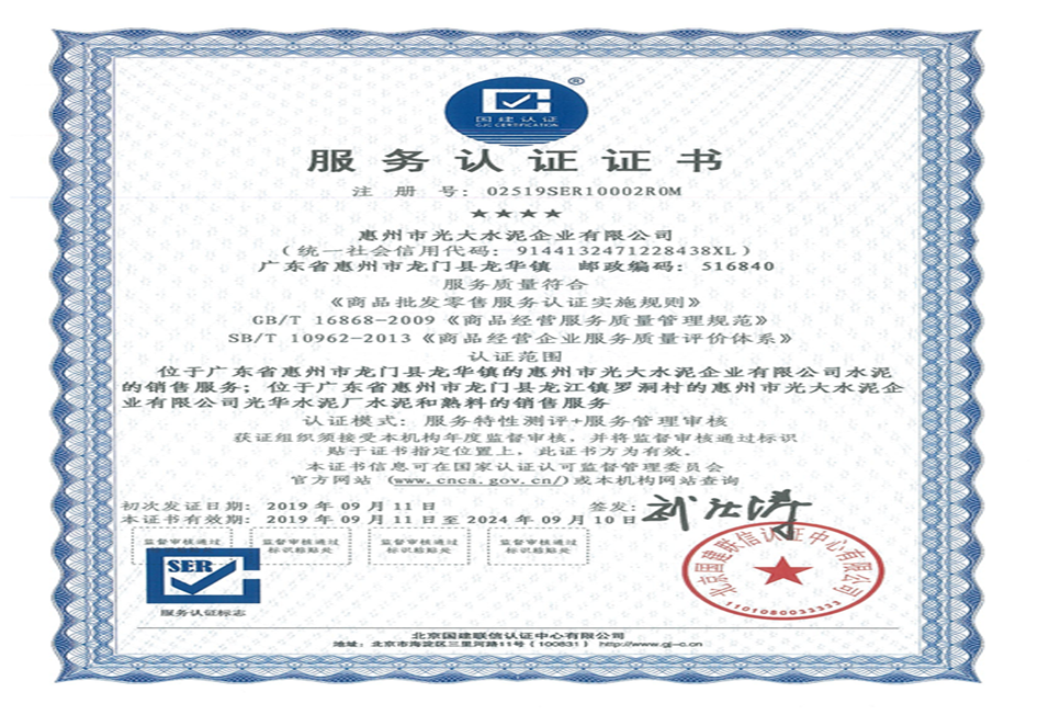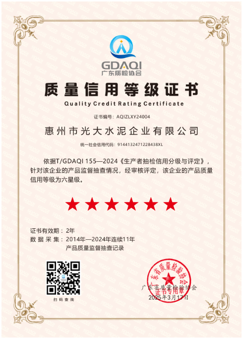 - 光大水泥榮獲廣東省質(zhì)量信用最高等級(jí)榮譽(yù)證書(shū)[2025-05-16]